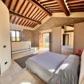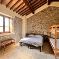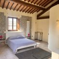 Upstairs there are 2 large bedrooms and a bathroom with tub. The master bedroom also has direct access to the garden via a stone staircase a door leading out to a small terrace with steps leading out to the garden. The guest house has tiled floors and beamed ceilings throughout and feature stone walls creating a very Tuscan feel, not to mention the pergola for outdoor dining.