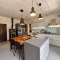The main house was restructured in 2002 and has a modern, Italian designed, kitchen with a central island and dining table. The fitted kitchen, which was installed in 2016, includes 2 ovens and a stylish glass backsplash. There is a pellet stove for additional cosiness in the winter months. To the rear of the kitchen is a spacious pantry/storage room and a bathroom.