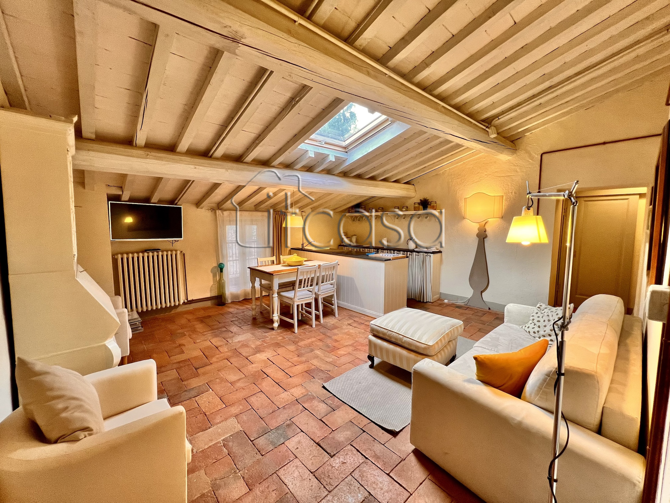 L’ingresso principale dell’Appartamento Vaniglia conduce direttamente nell’invitante salone con cucina a vista, tavolo da pranzo e zona giorno. Accanto alla zona giorno si trova una spaziosa e ariosa camera da letto con bagno privato. All’altra estremità dell’appartamento c’è un’altra grande stanza con possibilità di essere convertita in un’ulteriore camera da letto e bagno. L’appartamento ha soffitti e travi a vista di colore bianco e pavimenti in cotto. I mobili sono inclusi nella vendita e in una perfetta fusione di pezzi contemporanei e vintage.